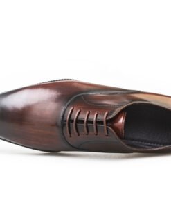 Brown Patina Wholecut Oxford Dress Shoes for Men